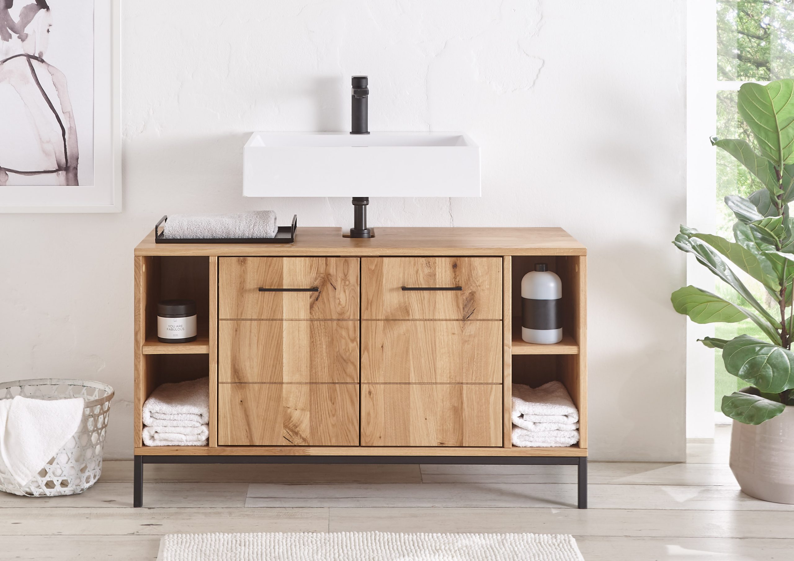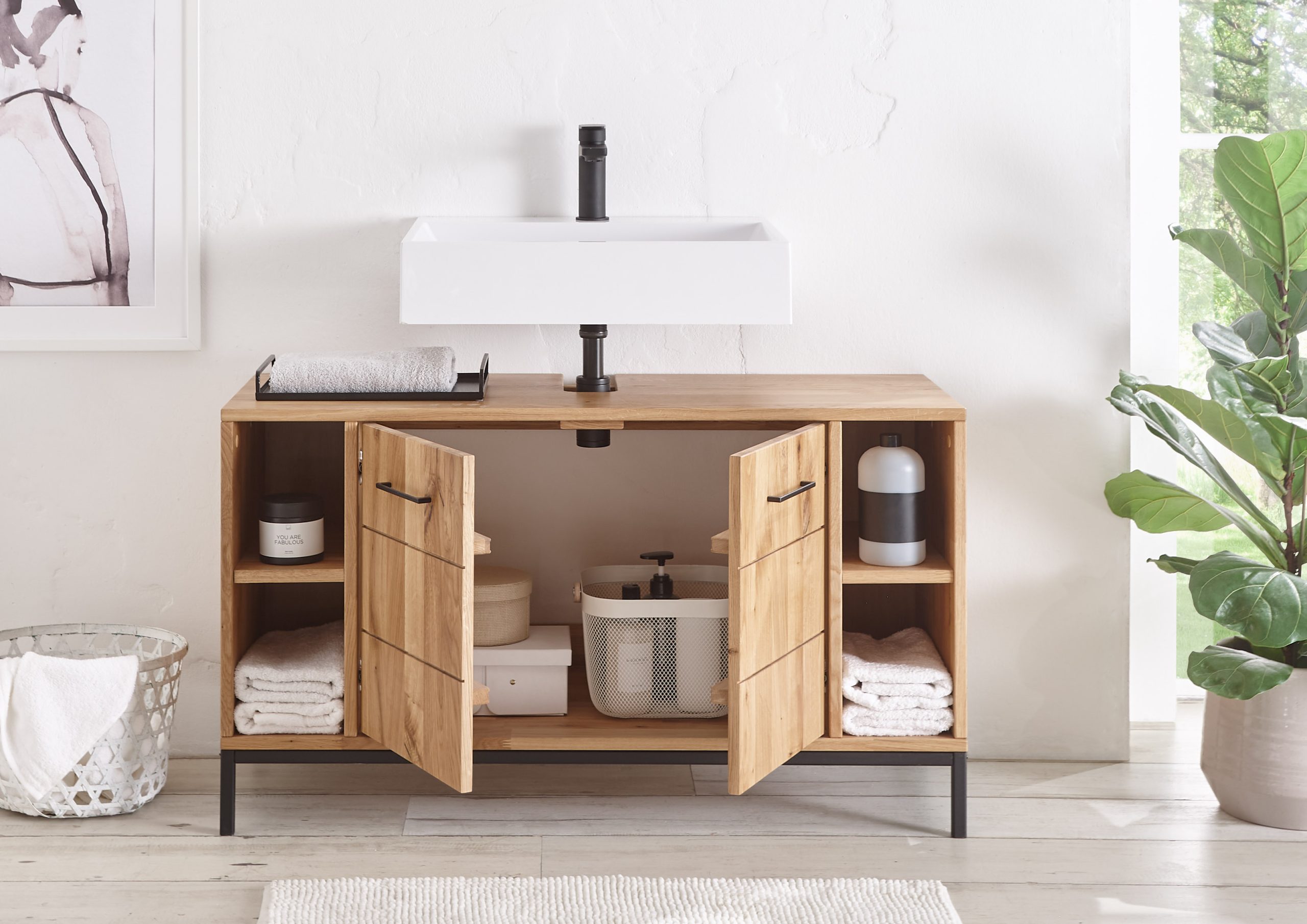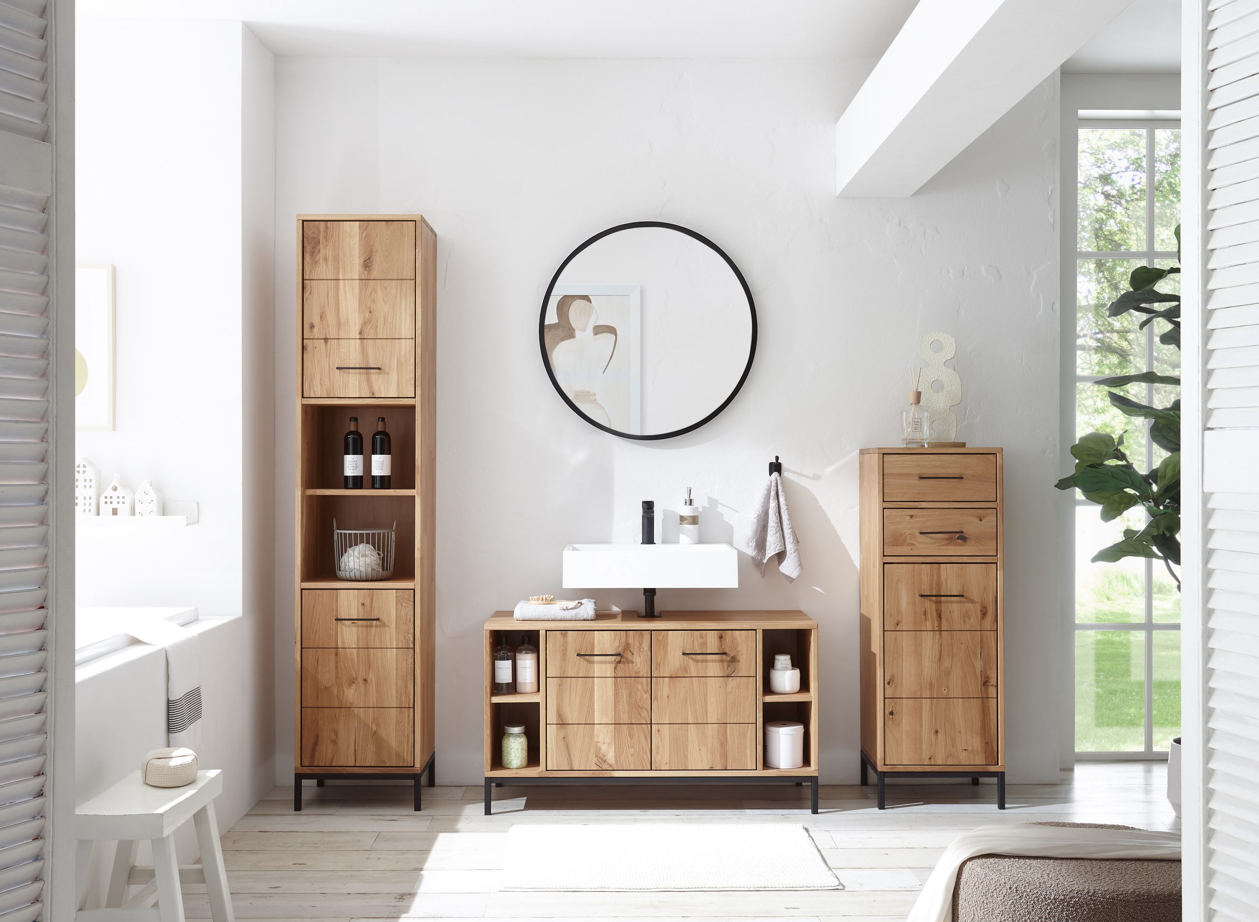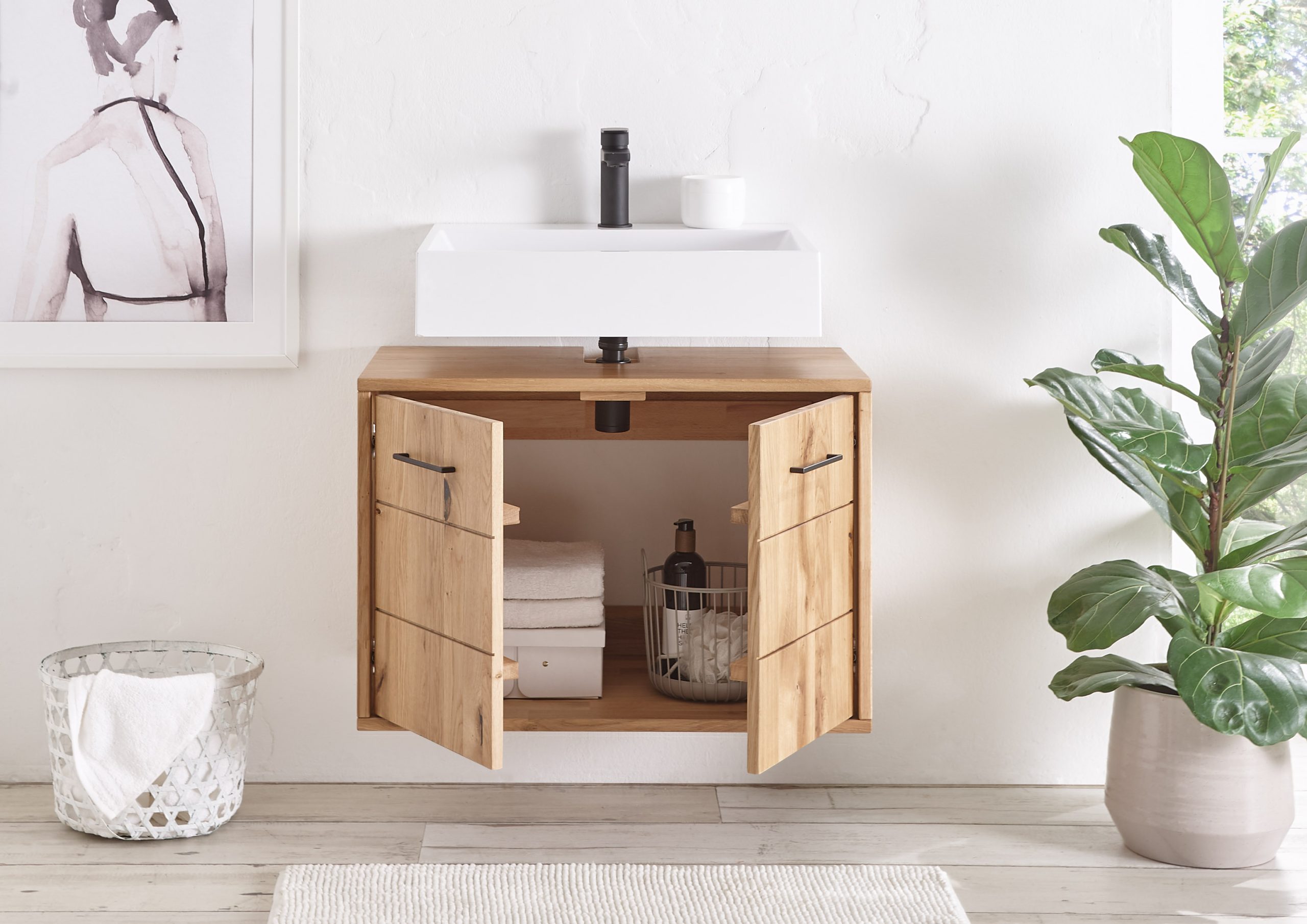 Modernes Badmöbel-Set für stilvolles Wohlfühlen. Hochwertige Materialien, klare Linien und praktische Stauraumlösungen schaffen eine elegante und funktionale Badezimmer-Atmosphäre. Perfekt kombinierbar für jeden Einrichtungsstil.